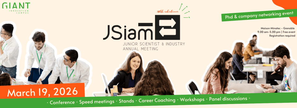 The Junior Scientist & Industry annual meeting (JSIam) is the GIANT Innovation Campus’ must-attend networking event for young researchers (PhD/postdoc) and professionals from industry, consulting and startups.