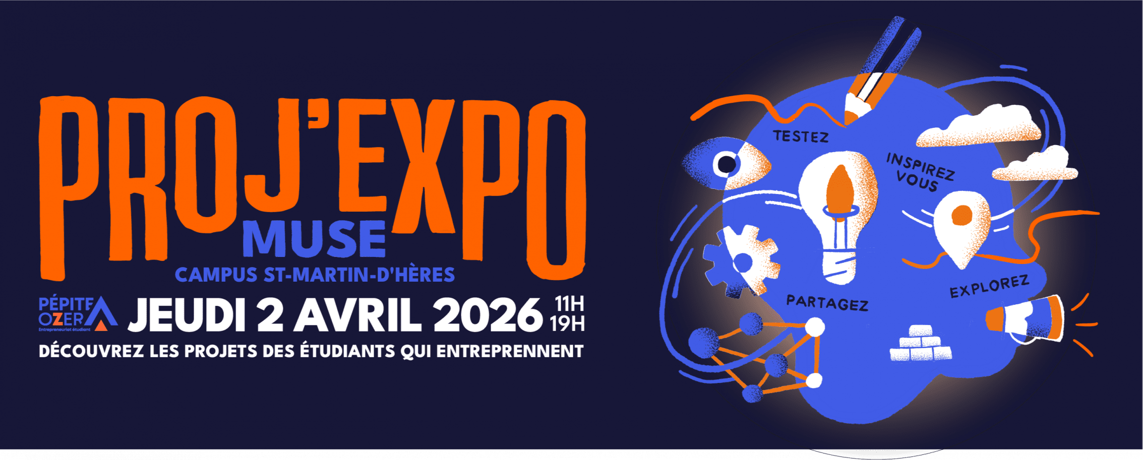 Proj’Expo, c’est le village des projets des étudiants-entrepreneurs et cette édition anniversaire vous réserve bien des surprises… Projets innovants, sociaux, artistiques, technologiques, artisanaux, événementiels, culturels… autant de stands que de projets à découvrir !